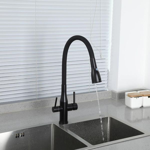 Смеситель для кухни Gappo G4399-66 с гибким изливом и подключением фильтра питьевой воды чёрный