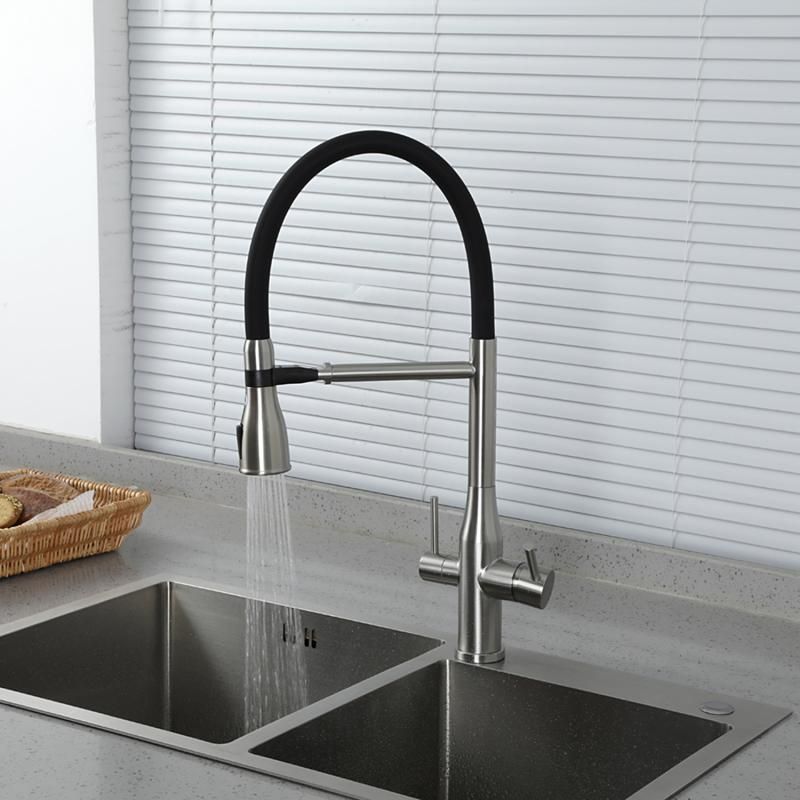 Смеситель для кухни Gappo G4399-75 с гибким изливом и подключением фильтра питьевой воды сатин/чёрный