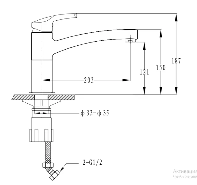 • Высота смесителя: