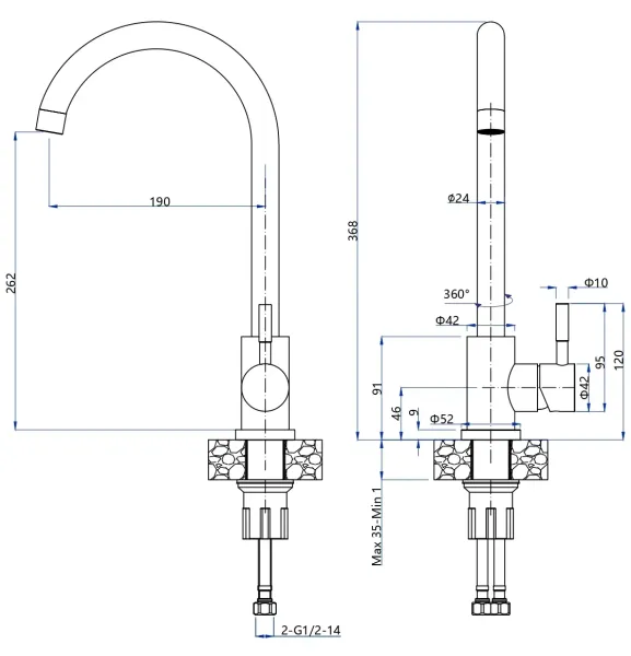 • Высота смесителя: