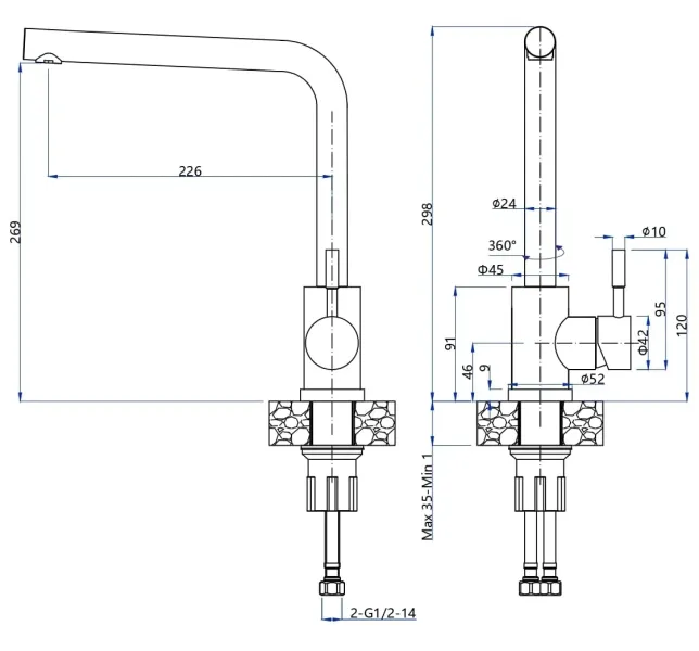 • Высота смесителя: