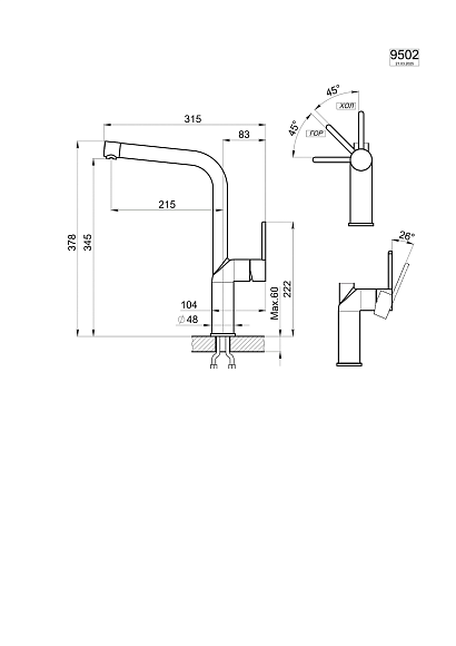 Смеситель для кухни Granula 9502, НЕРЖ Нерж купить