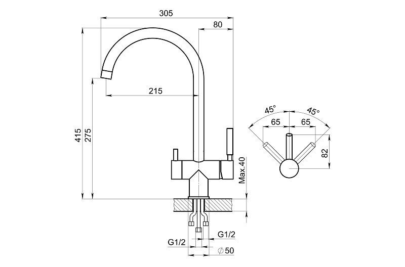• Высота смесителя: