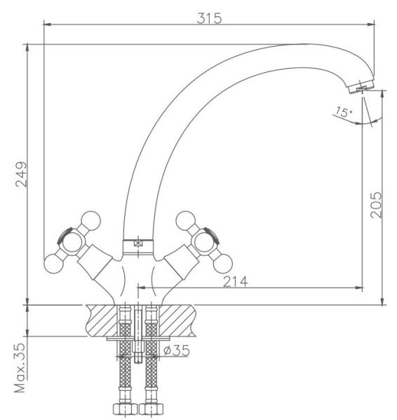Смеситель для кухни бренда Haiba.Изготовлен из латуни.Укомплектован аэратором.Гибкая подводка 40 см.С поворотным изливом.