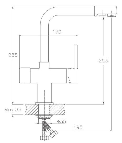• Высота смесителя: