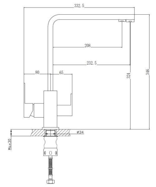 Смеситель для кухни бренда Haiba.Изготовлен из нержавеющей стали.Укомплектован аэратором.Гибкая подводка 40 см.С поворотным изливом.