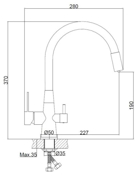 • Высота смесителя: