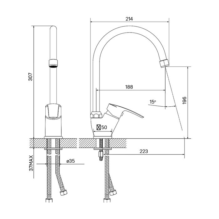 • Высота смесителя: