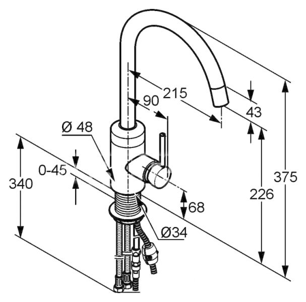 • Высота смесителя: