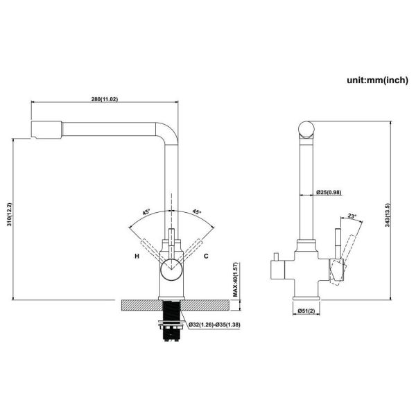 • Высота смесителя: