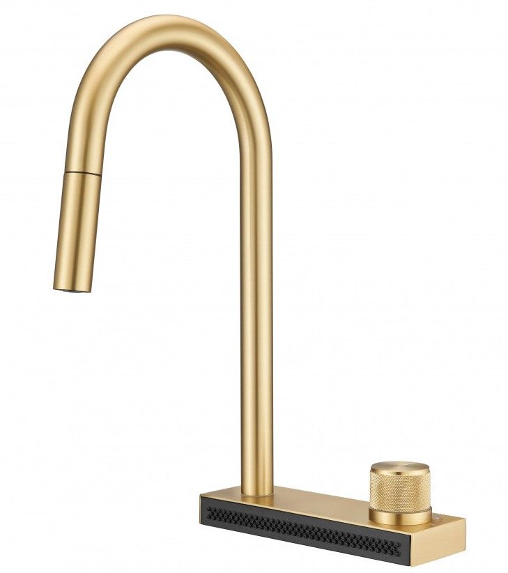 Смеситель для кухни Milacio Ultra MCU.556.GD с вытяжной лейкой и каскадным душем брашированное золото купить