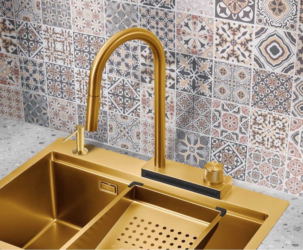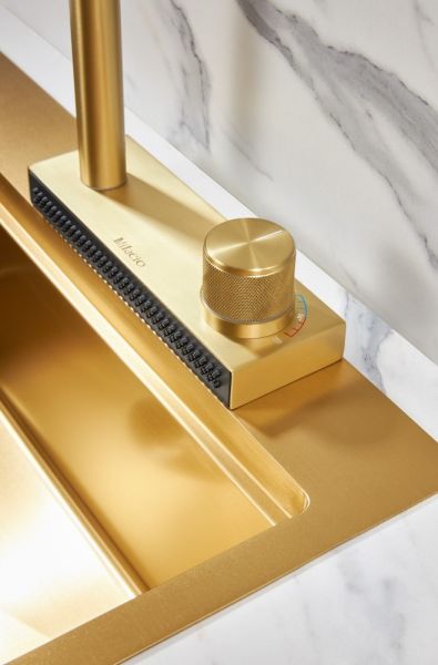 Смеситель для кухни Milacio Ultra MCU.556.GD с вытяжной лейкой и каскадным душем брашированное золото
