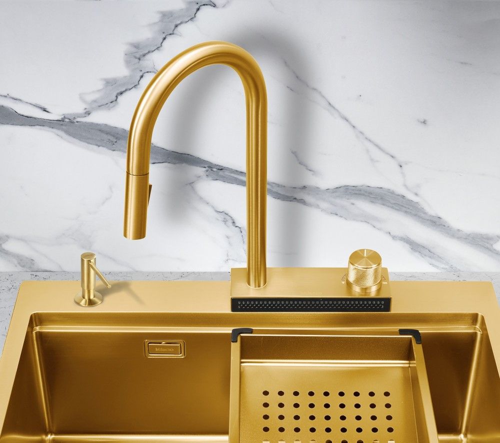 Смеситель для кухни с вытяжной лейкой и каскадным душем Milacio Ultra ( MCU.556.GD ) золото