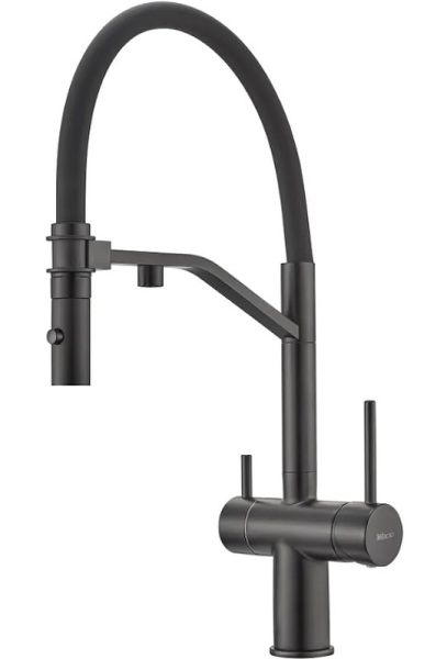 Смеситель для кухни Milacio Ultra MCU.557.TB с подключением к фильтру и гибким изливом Total Black
