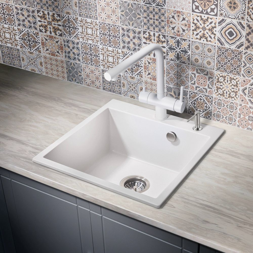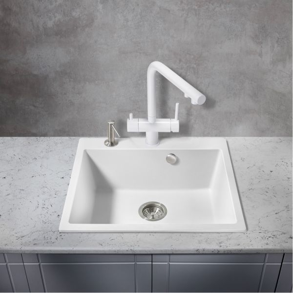 Модель выполнена в однородном белом цвете без вкраплений и деталей в других цветах и имеет изящный изогнутый кран, благодаря чему станет яркой, привлекающей внимание деталью на кухне и никого не оставит равнодушным.
