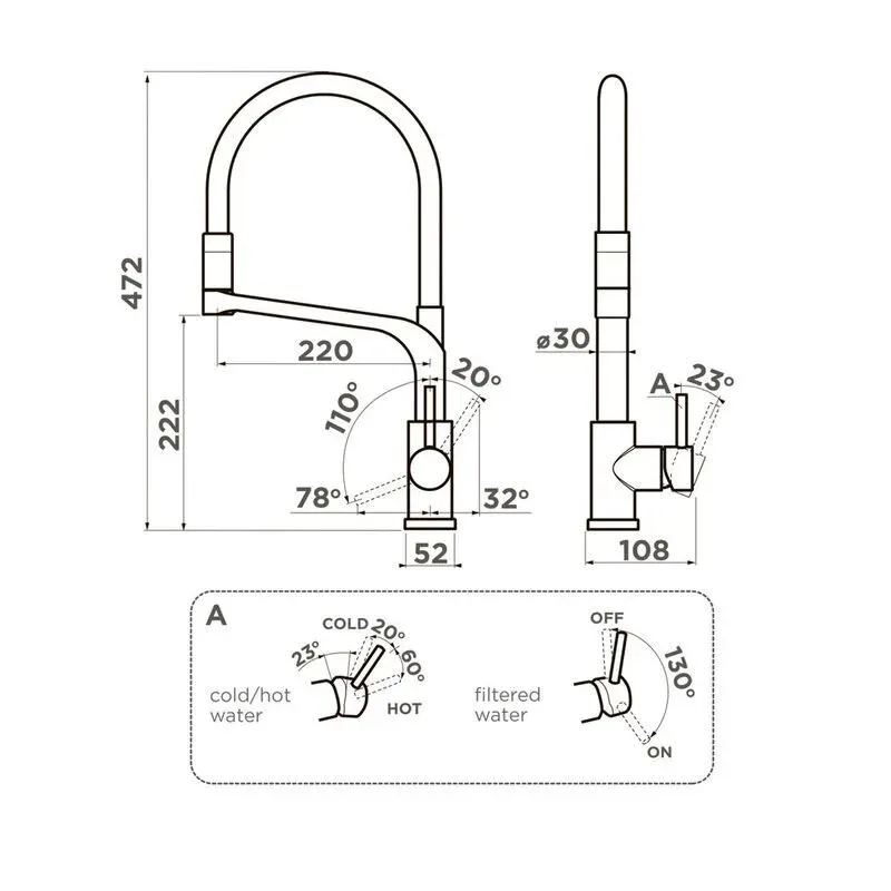 • Высота смесителя: 472 мм