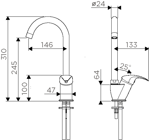 •Смеситель выполнен в современном стиле и снабжен высоким поворотным изливом. • Аэратор произведен из специального полимерного материала, благодаря чему на нем никогда не появится известкового налета и ржавчины. • Полный набор креплений, соединительных шлангов, подробная инструкция и гарантийный талон в комплекте.