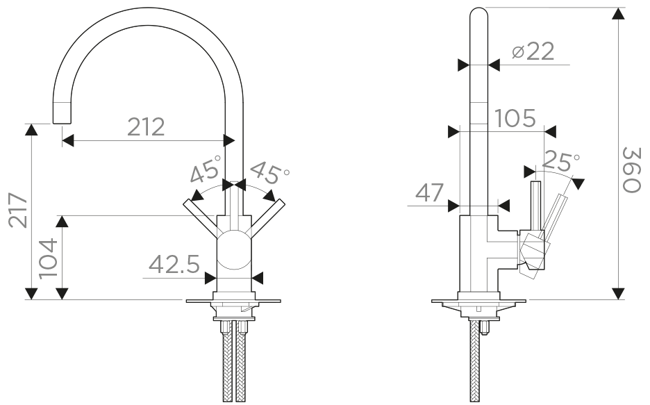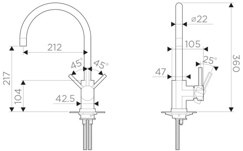 Высота смесителя:36