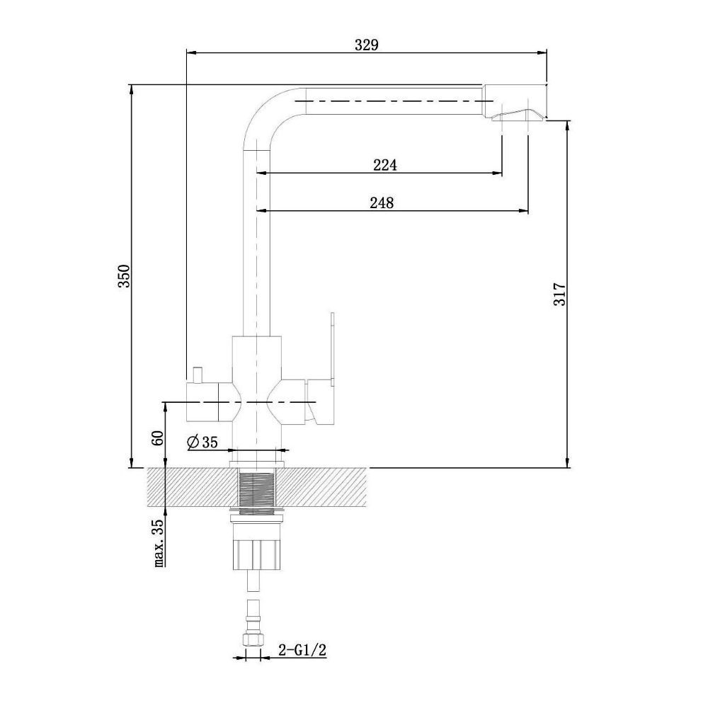 Смеситель для кухни (с керамическим картриджем) сделает кухню удобной и функциональной. Он изготовлен из латуни с эффектным покрытием матового никелевого цвета, нанесенным методом вакуумного напыления. На поверхности изделия незаметны разводы от высохшей воды и отпечатки пальцев. Два отдельных канала исключают смешивание водопроводной и фильтрованной воды. Высокий поворотный излив с аэратором обеспечивает комфорт при мытье посуды и предотвращает разбрызгивание.