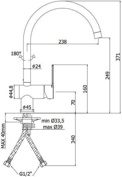 • Высота смесителя: