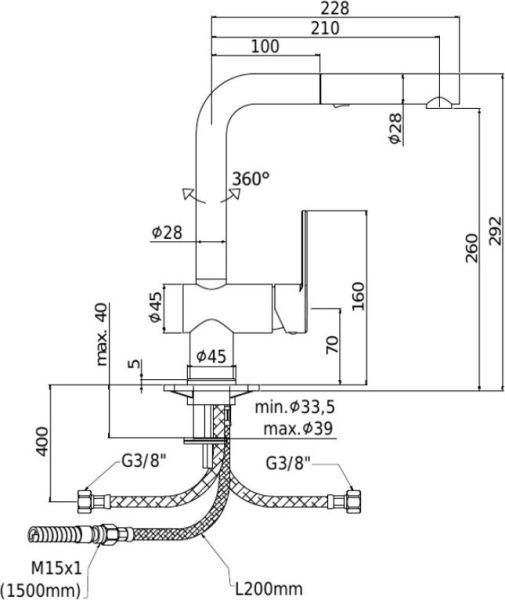 • Высота смесителя: