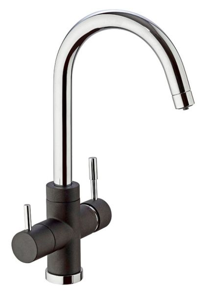 Оптимизируем мокрую зону на кухне со смесителем PAINI COX на 3 воды! Однорычажный смеситель классической формы, но с одной важной деталью: фильтр для воды подключается прямо к смесителю. Легкий монтаж без дополнительных отверстий в столешнице, теперь для доступа к питьевой воде нужно просто повернуть рычаг на корпусе смесителя. Смеситель представлен в необычных цветах, что дает простор творчеству и позволяет сочетать его с мойками и кухонной мебелью разных фактур и материалов.Разнообразие цветаТри варианта бежевого цвета: сахара, бежевый с вкраплениями (гранит) и нежный трюфель, а также белый с вкраплениями (гранит) и комбинация черного и хромого цветов в корпусе смесителя. Теперь точно получится попасть в цвет столешницы и/или цвет мойки либо создать контрастные сочетания. Все варианты покрытия, включая покрытие под камень, выполнены по специальной технологии, сохраняющей цвет и фактуру надолго и облегчающей уход за смесителем.3 воды в одном корпусеПодключение фильтра для воды прямо к смесителю.Европейское качествоСделано в Италии. Гарантия – 5 лет.Технологии гарантируют долгий срок службыФабрика «Паини» использует только лучшие комплектующие. Аэратор Neoperl наполняет поток воды кислородом, увеличивает напор, экономя воду. Одно движение пальцем для очистки сеточки. Керамический картридж Nuovo Galatron – основа, необходимая для долгой работы смесителя.Легкая уборкаНесколько движений – и готово. Мыльная губка и сухая тряпочка – все, что нужно для уборки.