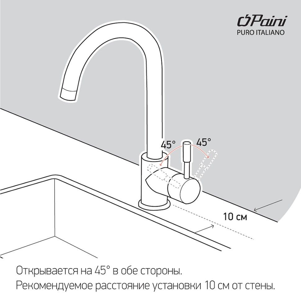 Все дело в цвете! Необычное решение для современной кухни – однорычажный смеситель коллекции COX с поворотным изливом и увеличенной высотой корпуса. Популярная форма смесителя в этот раз представлена в необычных цветах, что дает простор творчеству и позволяет сочетать его с мойками и кухонной мебелью разных фактур и материалов. А увеличенная высота корпуса дает больше возможностей при использовании.Разнообразие цветаБелый с вкраплениями (гранит), комбинация черного и хромого цветов в корпусе смесителя, и три варианта бежевого цвета: сахара, бежевый с вкраплениями (гранит) и нежный трюфель. Теперь точно получится попасть в цвет столешницы и/или цвет мойки либо создать контрастные сочетания. Все варианты покрытия, включая покрытие под камень, выполнены по специальной технологии, сохраняющей цвет и фактуру надолго и облегчающей уход за смесителем.Европейское качествоСделано в Италии. Гарантия – 5 лет.Технологии гарантируют долгий срок службыФабрика «Паини» использует только лучшие комплектующие. Аэратор Neoperl наполняет поток воды кислородом, увеличивает напор, экономя воду. Одно движение пальцем для очистки сеточки. Керамический картридж Nuovo Galatron – основа, необходимая для долгой работы смесителя.Легкая уборкаМыльная губка и сухая тряпочка – все, что нужно для уборки. Несколько движений – и готово.