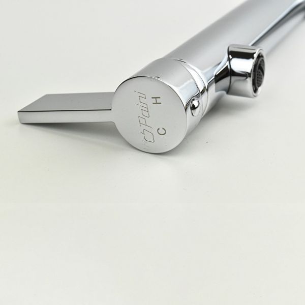 Смеситель для кухни коллекции CUCINA от итальянского бренда PAINI с необычной изогнутой формой станет стильным аксессуаром на Вашей кухне. Удобная ручка сверху на изливе обеспечивает легкость, комфорт и эффективность в использовании. Смеситель удобно закрывать и открывать его даже если у вас запачканные руки, просто поверните рычаг тыльной стороной ладони или локтем.Оригинальный рычаг управленияЛовите удивленные взгляды ваших друзей - такой красивой и одновременно удобной ручки они ещё не видели!Европейское качествоСделано в Италии. Гарантия – 5 лет.Технологии гарантируют долгий срок службыАэратор Neoperl наполняет поток воды кислородом, увеличивает напор, экономя воду. Одно движение пальцем для очистки сеточки. Nuovo Galatron - керамический картридж – основа, необходимая для долгой работы смесителя.Легкая уборкаМыльная губка и сухая тряпочка – все, что нужно для уборки. Несколько движений – и ваш смеситель от "Паини" как новый.