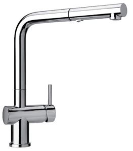 Высокий цилиндрический корпус и прямой изгиб излива однорычажного смесителя для кухни CUCINA сделали его эстетичным и незаменимым в использовании. Благодаря выдвижной лейке можно легко набрать воду в глубокие емкости вне мойки, сполоснуть посуду разной формы, а поворотный высокий излив сделает использование еще комфортнее. Рычаг расположен сбоку, что позволяет открыть воду локтем или запястьем, если руки испачканы. Отточенная геометрия этого смесителя позволяет комбинировать его с кухнями в стиле лофт, хорошо смотрится в стиле хай-тек или внесет завершающую деталь в интерьер в стиле модерн.
