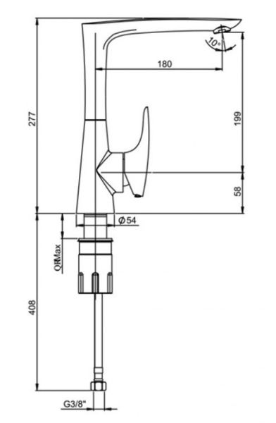- Аэратор Neoperl под наклоном (струя отводится дальше от края мойки) наполняет воду кислородом, увеличивает напор, вследствие чего становится возможной существенная экономия воды. Сеточка легко очищается пальцем.