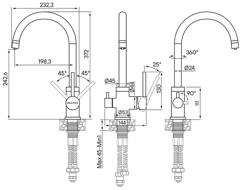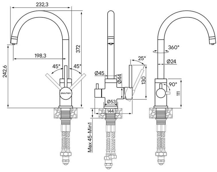 Высота смесителя:37