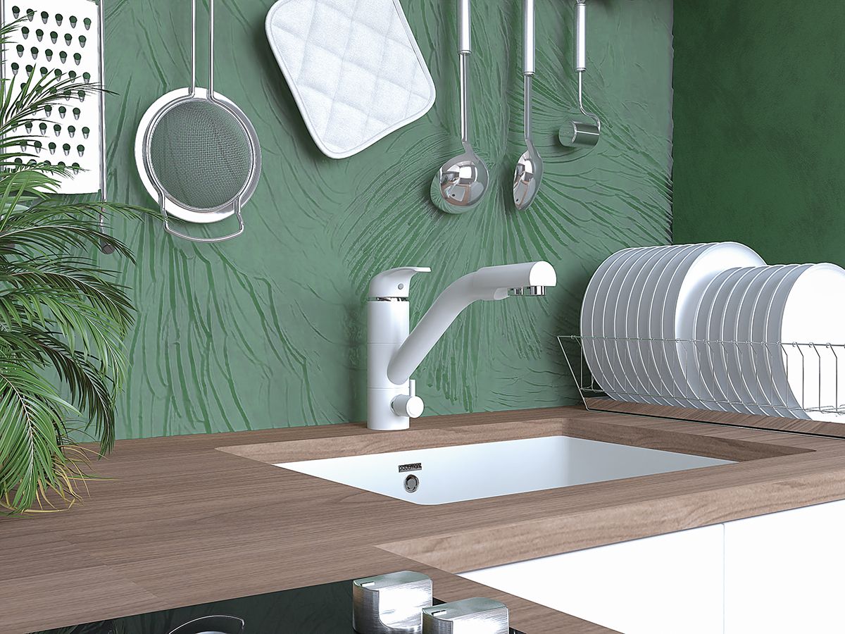 Идеален для ограниченного кухонного пространства, прекрасно сочетается с кухонными мойками небольших размеров.