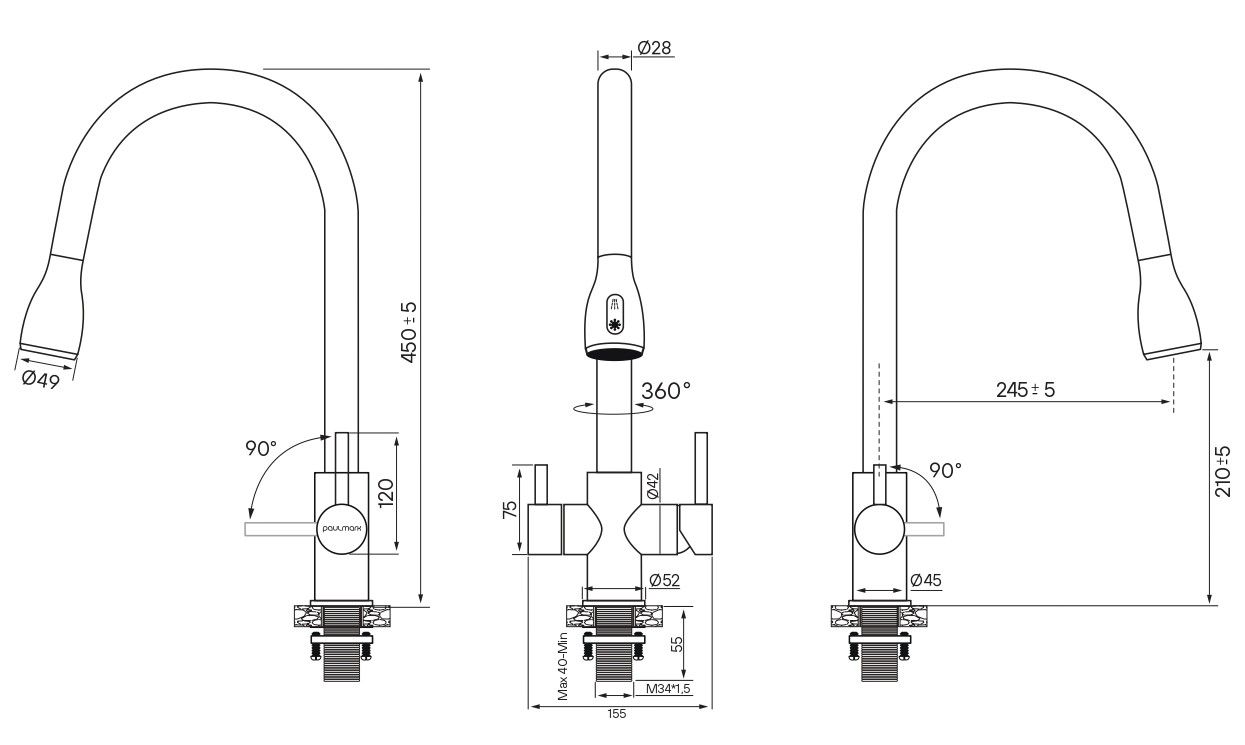 Высота смесителя:45