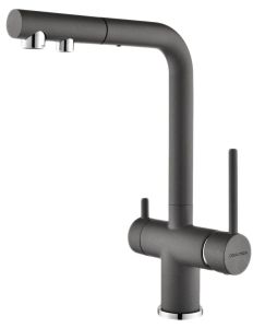 Смеситель для кухни с выдвижным изливом и возможностью подключения фильтра питьевой воды, артикул Se213222-GRMИзготовлен из высококачественной латуни, которая отвечает высочайшим европейским стандартам качества, не содержит свинца, не разрушается со временем и безопасна для здоровья.Смеситель для кухонной мойки SERPENTINE изготовлен из высококачественной латуни в классическом дизайне с изливом Г-образной формы. Излив поворотный на 180. Высота излива – 330 мм.