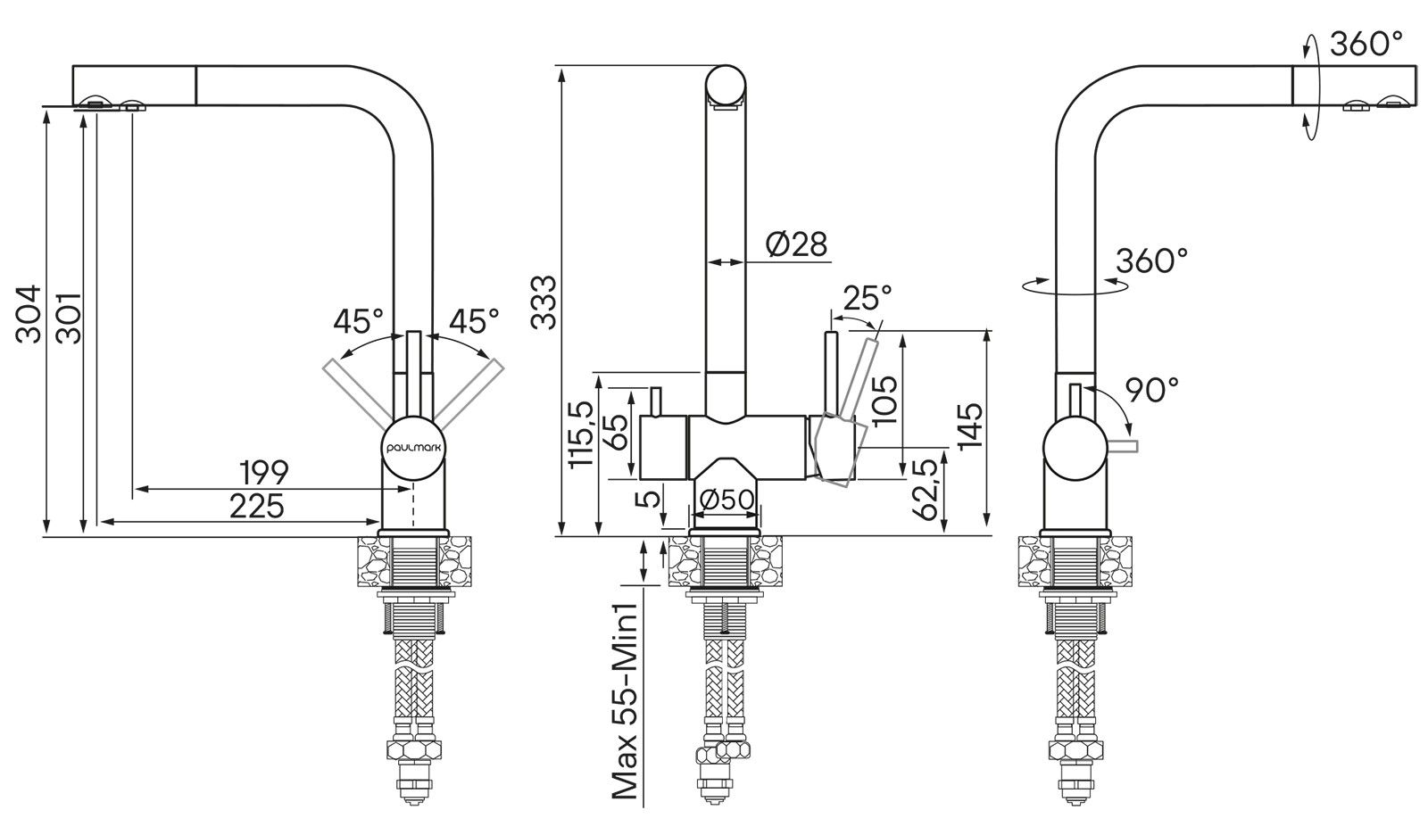 Вращение на 360° позволяет легко управлять потоком воды.