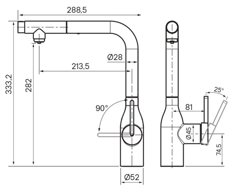• Выдвижной излив: