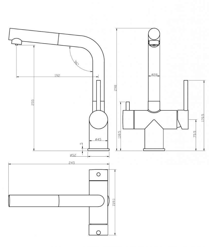 Смеситель для кухни под фильтр с выдвижным изливом GROCENBERG GB4097CR (Kerox Венгрия) Хром купить