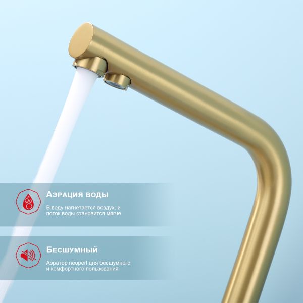 Смеситель для кухни Raglo R81.61.03 с подключением фильтра золотой сатин купить