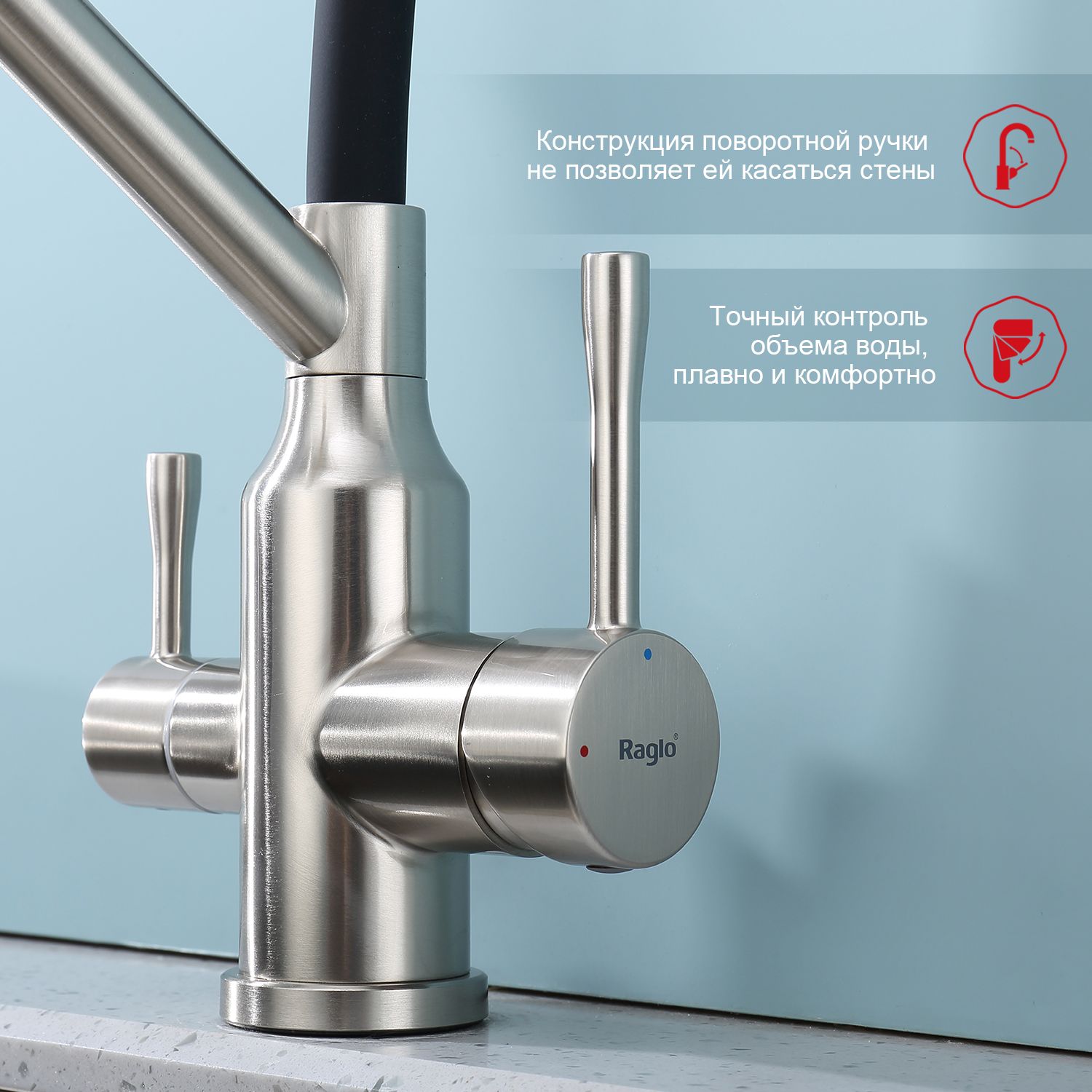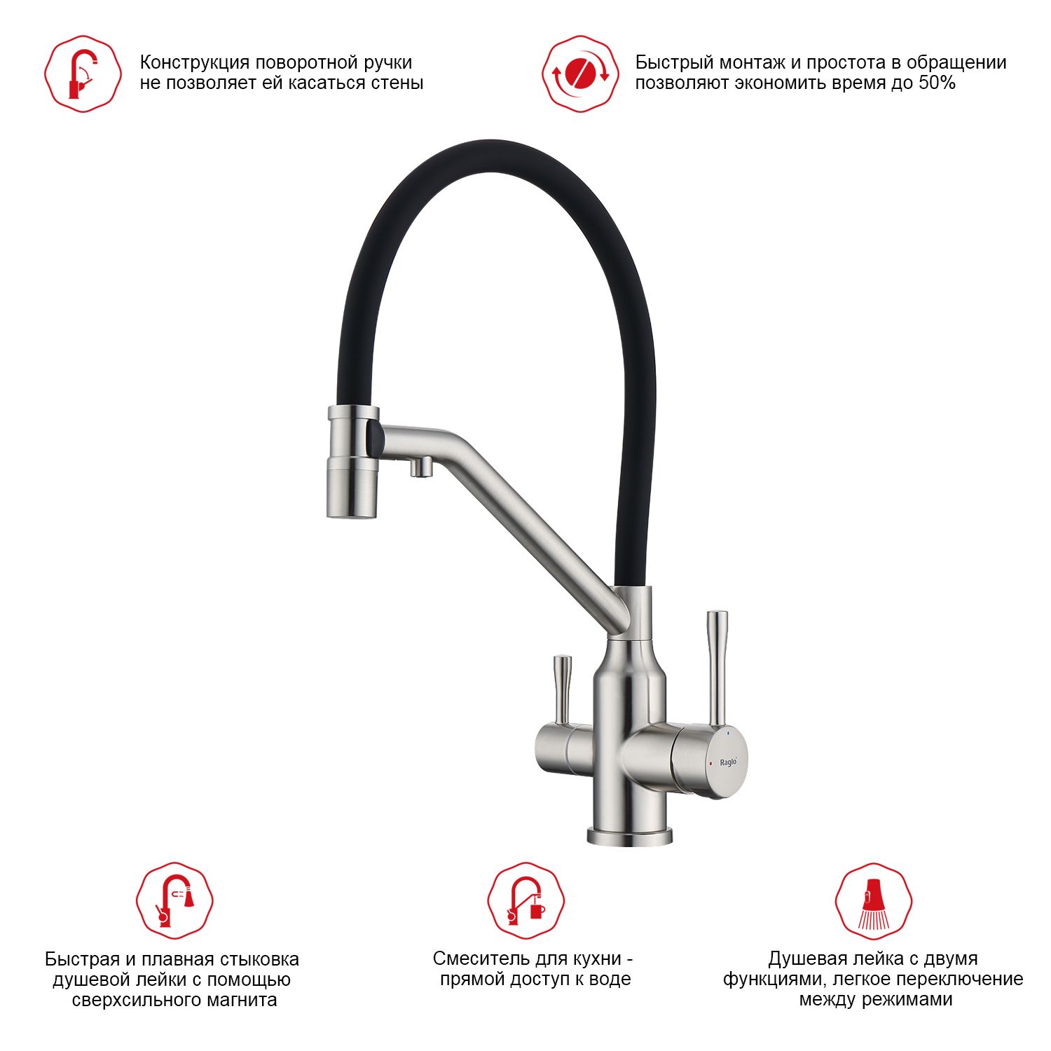 Смеситель для кухни Raglo R81.62.05 с подключением фильтра сатин купить