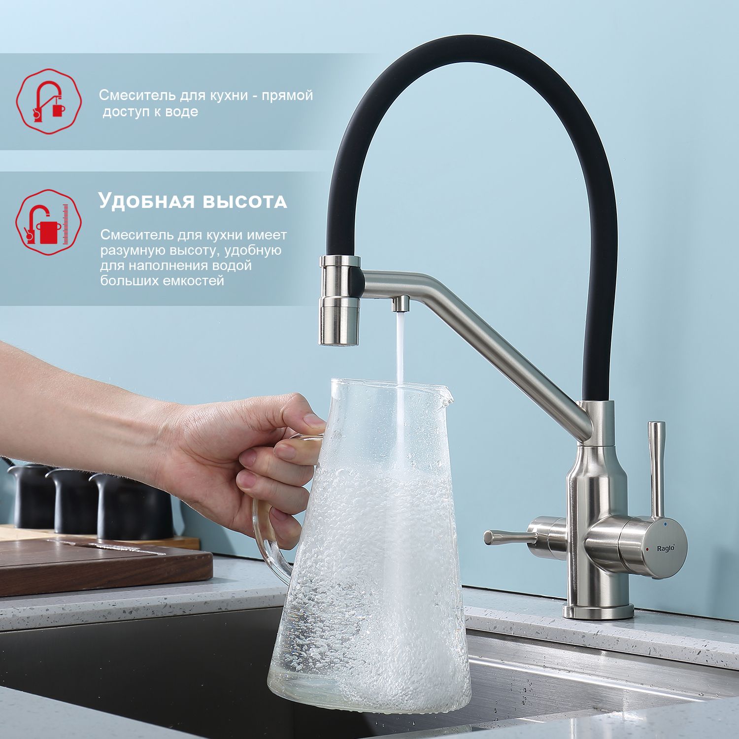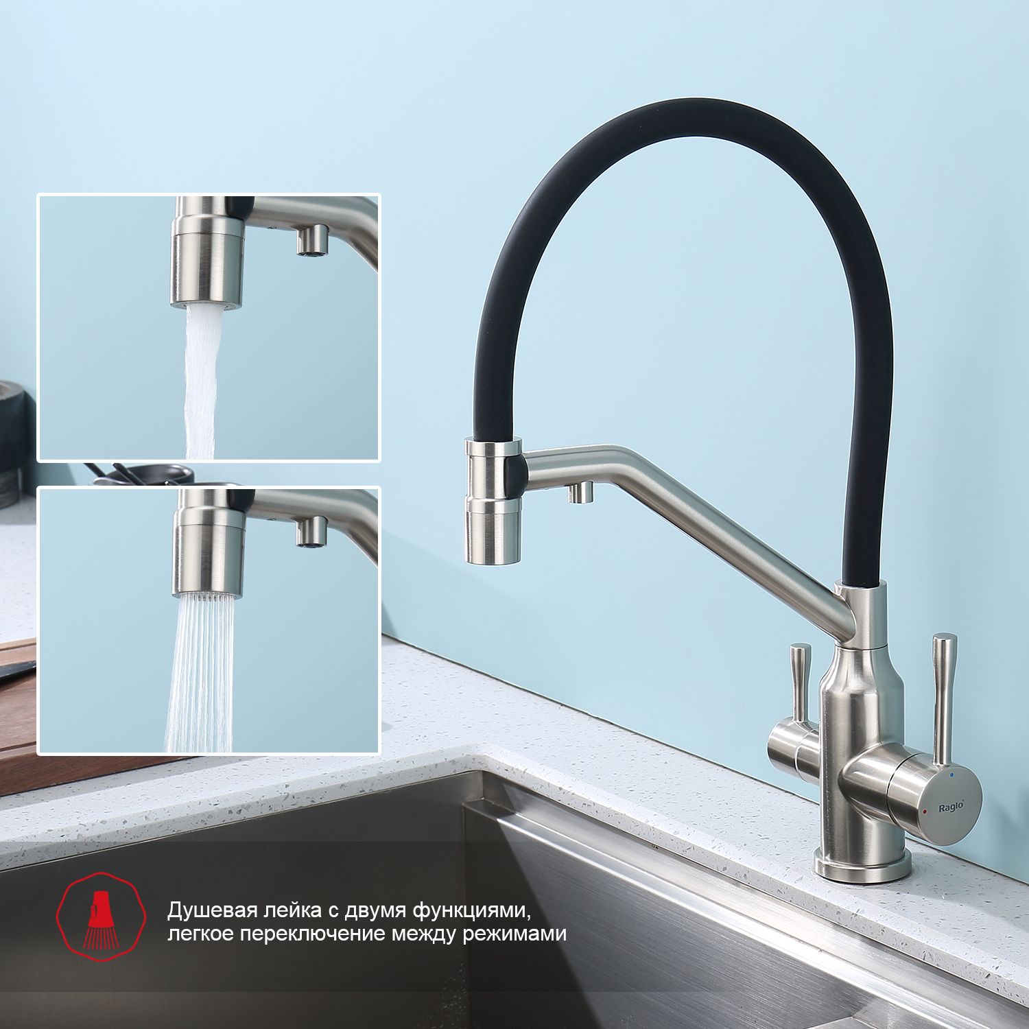 Смеситель для кухни Raglo R81.62.05 с подключением фильтра сатин