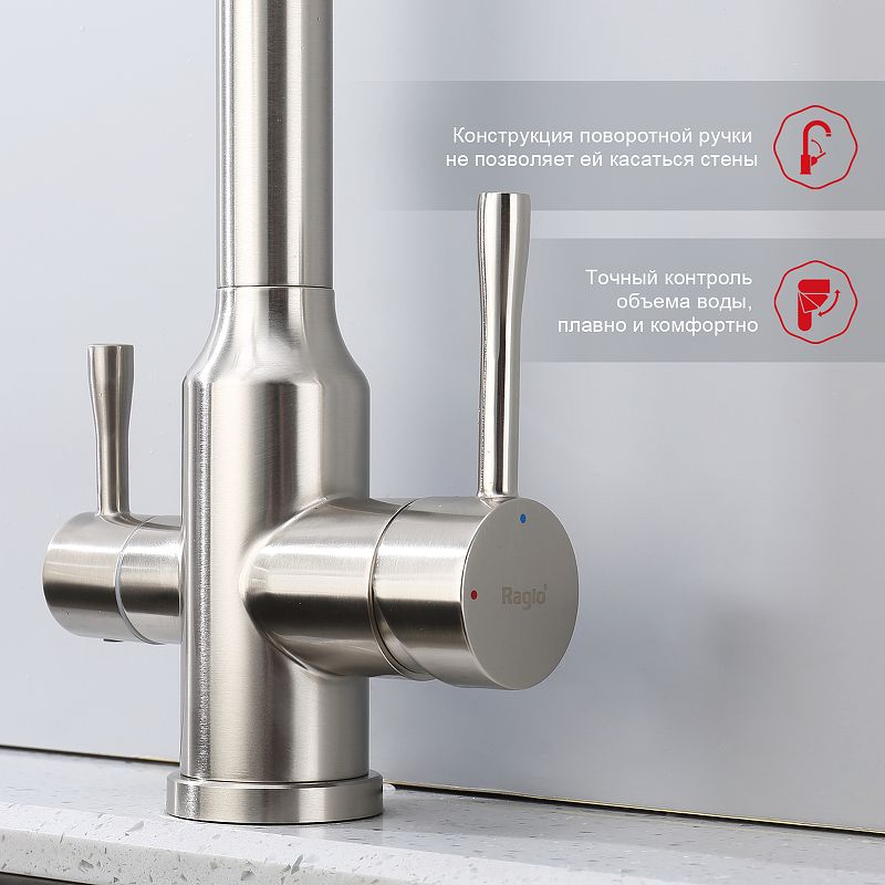 Смеситель для кухни Raglo R81.63.05 с подключением фильтра сатин купить
