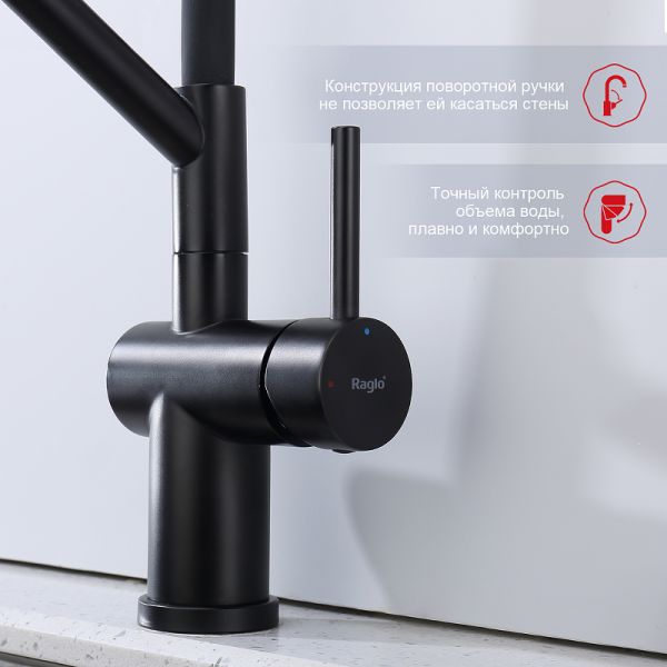Смеситель для кухни Raglo R86.41.06 со съемным изливом на магните чёрный купить