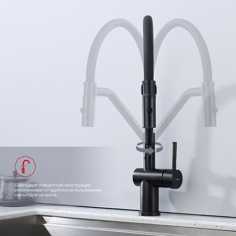 Смеситель для кухни Raglo R86.41.06 со съемным изливом на магните чёрный