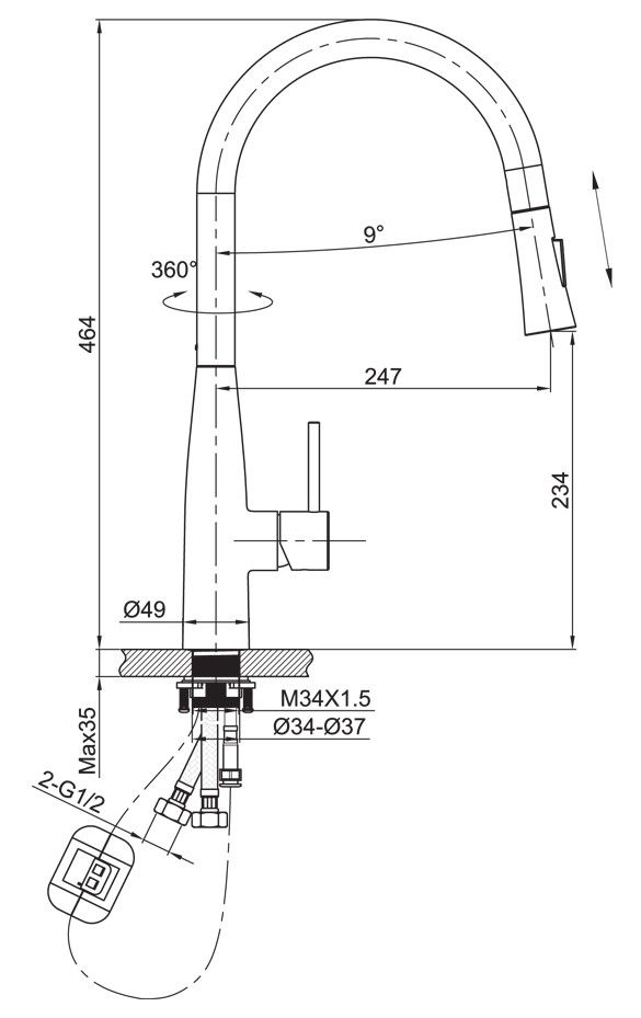 • Высота смесителя: