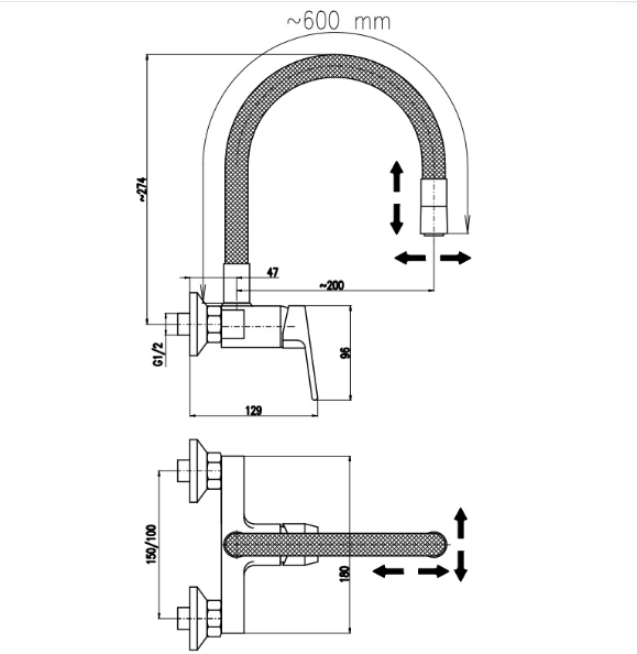 Высота смесителя:27.4