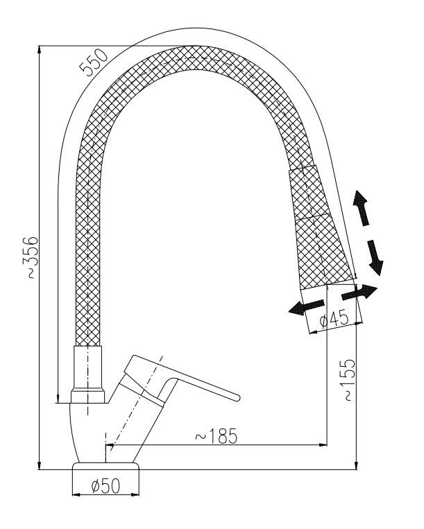 • Гибкий излив: