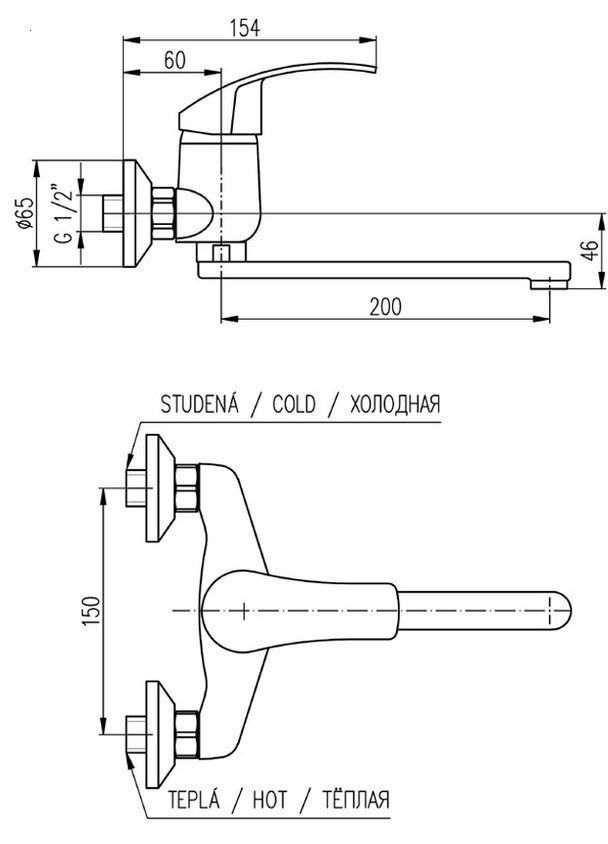 • Высота смесителя: