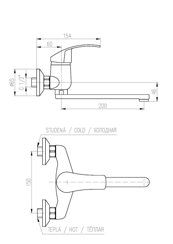 • Высота смесителя: