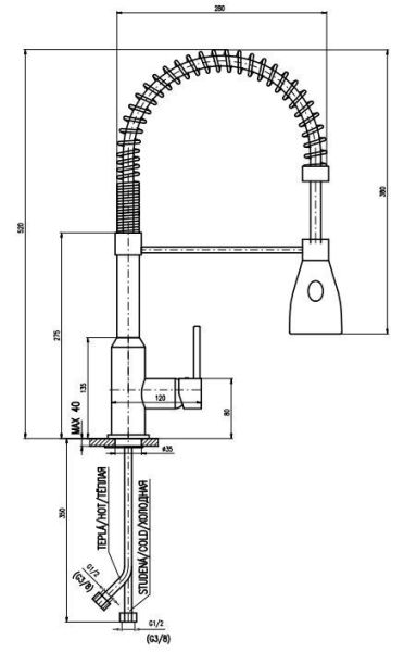 • Высота смесителя: