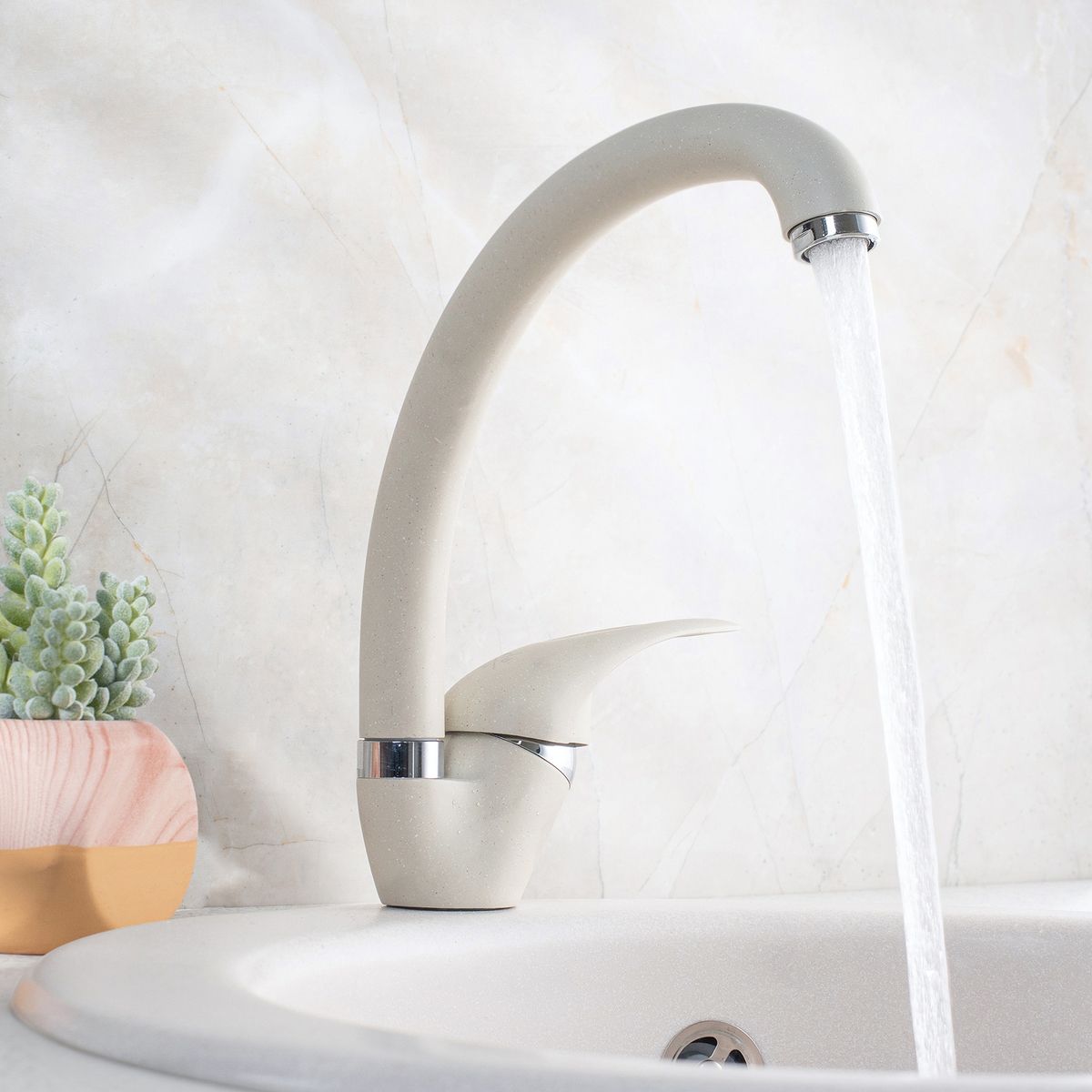 Изящный и функциональный однорычажный смеситель для кухни с высоким поворотным изливом отлично подойдет для любой кухни, а благодаря обширной цветовой гамме идеально впишется в интерьер.